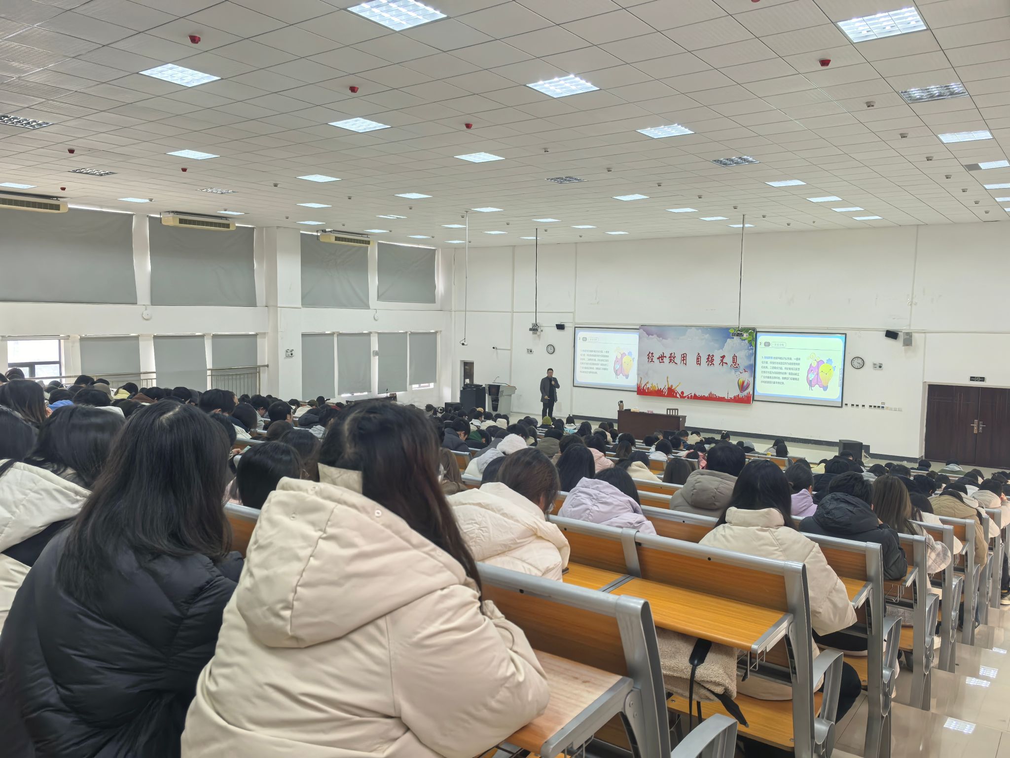 讲座中,蒋睿围绕高校学子创新成长方式、项目可行性判别和商业模式三方面与同学们进行了分享。他以自身的创业经历为切入点,通过讲述自己的创业故事,鼓励同学们要有勇于创新、敢闯敢干的精神,强调应积极了解外部信息,给自己更多样的职业选择方向;有针对性地提出了提升老员工创新创业意识和能力的有效途径,鼓励同学们立足地区经济特点,与所学专业知识紧密结合,寻找创新点,积极申报创新创业训练计划和参加各类创新创业学科竞赛;结合市场痛点分析、产品介绍、运营现状等多个方面详细讲解如何打造参赛项目,鼓励同学们在模拟中论证实践,培养创新思维,提升创业实践能力。